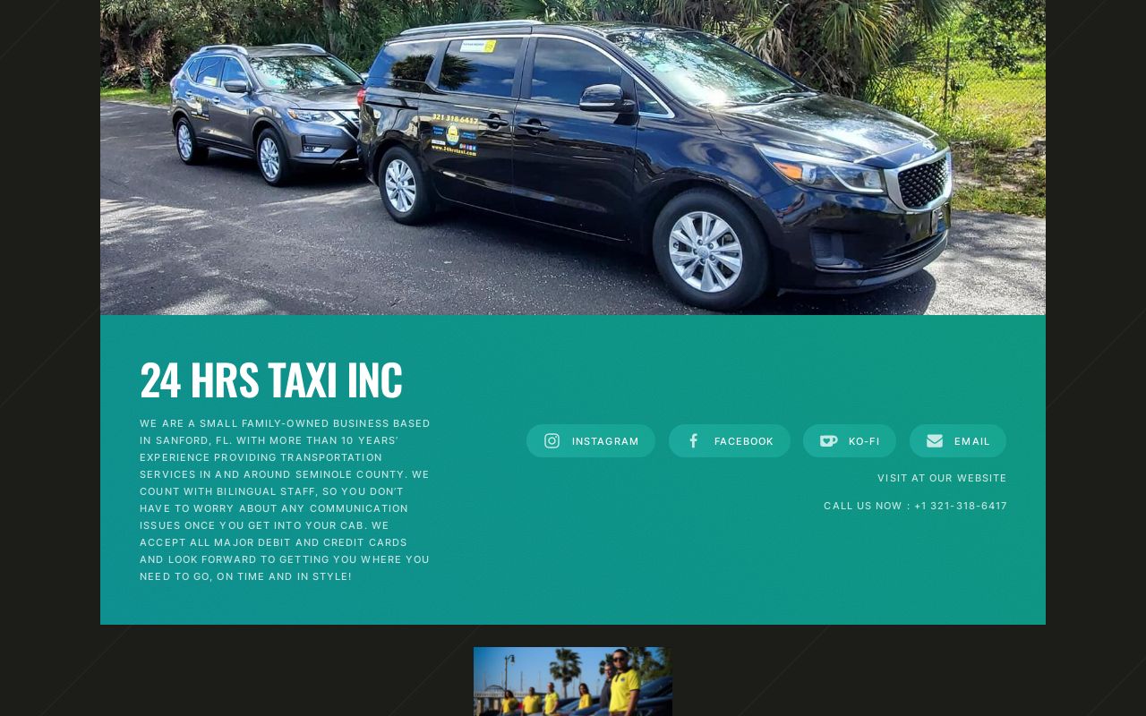 24HRSTAXIUS.CARRD.CO24HRS Taxi IncWe are a small family-owned business based in Sanford, FL. With more than 10 years’ experience providing transportation services in and around Seminole County. We count with bilingual staff, so you don’t have to worry about any communication issues once you get into your cab. We accept all major debit and credit cards0 Reacties 0 aandelen 771 Views -