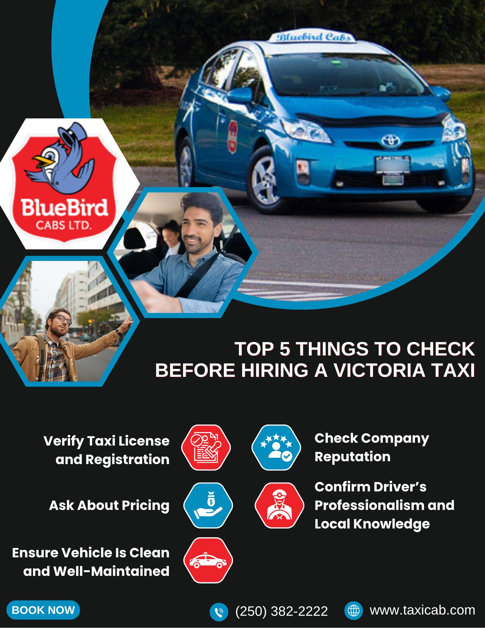 Visit us at: https://www.taxicab.com/Top 5 Things to Check Before Hiring a Victoria Taxi When you’re looking for a Victoria taxi to get around the city or to and from the airport, comfort, safety, and reliability are key. Whether you’re a local or a visitor, knowing what to check before hiring a taxi in Victoria ensures you enjoy a smooth and secure ride. Here are the top 5 things to consider before booking your next cab in Victoria, BC. 1. Check the Taxi Licensing and Registration Make sure the taxi you’re hiring is appropriately licensed to operate in Victoria, BC. Licensed taxis meet all safety, insurance, and regulatory requirements. Look for visible decals or plates, and never hesitate to ask the driver for their credentials. A legitimate taxi company in Victoria, BC, will have no problem showing its certification. 2. Review the Taxi Company’s Reputation Before booking, spend a few minutes reviewing the cab service online. Look at their Google reviews, TripAdvisor or Yelp ratings, and website testimonials. Reputable services like Bluebird Cabs Ltd. consistently receive positive feedback for professional service, cleanliness, and punctuality. Avoid companies with repeated complaints about delays, pricing issues, or rude drivers. 3. Ask About the Pricing and Fare Structure Understanding the fare estimate before your ride helps prevent surprises. Reliable Cab Victoria BC services are transparent about their pricing—whether it’s a metered rate or a flat fee. If the taxi uses a meter, ensure it’s functioning properly. For airport pickups or long-distance rides, confirm if there are any extra charges for luggage, night service, or waiting time. 4. Ensure Vehicle Cleanliness and Maintenance A clean and well-maintained taxi reflects the company’s standards. Before entering the vehicle, check that it appears clean and smells fresh. Ask the driver about air conditioning, seat belt availability, and whether the vehicle undergoes regular inspections. Companies like Blue Bird Cab maintain high hygiene standards for rider comfort and safety. 5. Confirm Driver Professionalism and Local Knowledge The driver should be courteous, licensed, and knowledgeable about Victoria’s roads. A professional driver helps you avoid traffic bottlenecks and reach your destination efficiently. Drivers familiar with the area can also offer suggestions for dining, sightseeing, or quick routes around the city. Conclusion Choosing the right taxi in Victoria doesn’t have to be a gamble. By checking the vehicle’s licensing, reading reviews, confirming the fare structure, inspecting cleanliness, and ensuring the driver’s professionalism, you can have a safe and stress-free experience. For dependable and timely service, Bluebird Cabs Ltd. is always ready to take you anywhere in Victoria, BC. 📞 Need a ride? Book your next cab with Bluebird Cabs Ltd.! 🌐 Visit us at: https://www.taxicab.com/0 Comments 0 Shares 199 ViewsPlease log in to like, share and comment! -