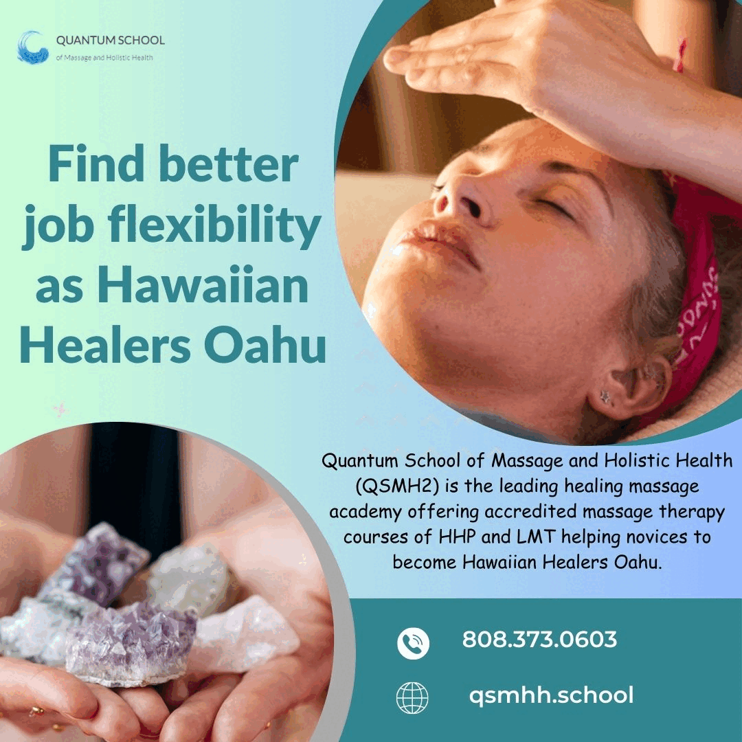 Quantum School of Massage & Holistic Health furnishes their Holistic Health Practitioner (HHP) Program session for the Hawaiian Healers Oahu, wherein it enables the learners to heal themselves, and their families. They can also use the therapeutic cognizance for practicing healing businesses. The program is an integrated hands-on practical training meticulously designed to develop the trainees to operate as holistic health healers. Nevertheless, the students can also obtain the professional skills required for engaging in self-employment. Herein, to acquire the HPP diplomas, learners need to complete the 298 and 50 hours of classroom sessions and clinical practices respectively. Explore www.qsmhh.schoolQuantum School of Massage & Holistic Health furnishes their Holistic Health Practitioner (HHP) Program session for the Hawaiian Healers Oahu, wherein it enables the learners to heal themselves, and their families. They can also use the therapeutic cognizance for practicing healing businesses. The program is an integrated hands-on practical training meticulously designed to develop the trainees to operate as holistic health healers. Nevertheless, the students can also obtain the professional skills required for engaging in self-employment. Herein, to acquire the HPP diplomas, learners need to complete the 298 and 50 hours of classroom sessions and clinical practices respectively. Explore www.qsmhh.school0 Comments 0 Shares 300 Views