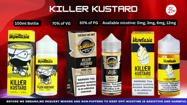 Killer Kustard by Vapetasia is a creamy blend of smooth vanilla custard and sweet dessert notes, offering a perfectly balanced, rich flavor that’s ideal for an all-day vape. More details click here - https://vaporboss.com/blogs/vaping/killer-kustard-e-liquid-sees-renewed-demand-across-vape-retailers