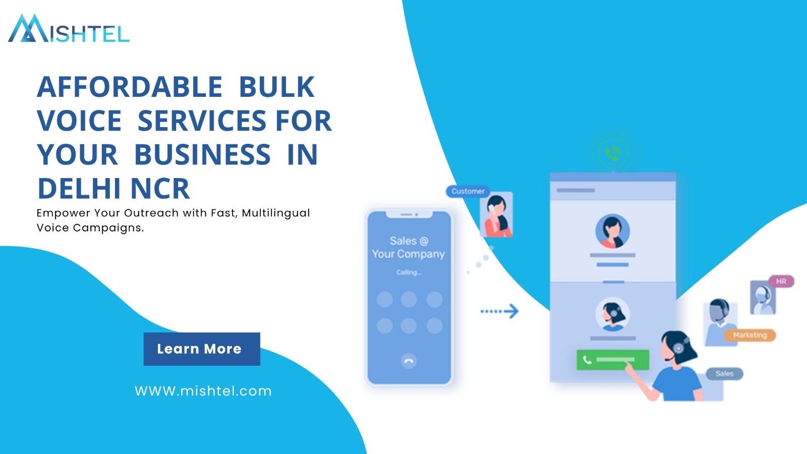 In today's highly competitive and digital-first business environment, engaging with your customers is no longer just a value-add—it’s a necessity. While SMS, emails, and push notifications are widely used, bulk voice calls remain one of the most effective and personal forms of business communication. Whether it's for promotions, alerts, surveys, or political messaging, Bulk voice services in Delhi NCR deliver powerful, human-like communication that cuts through the noise and creates a lasting impact. Read more: https://www.mishtel.com/Bulk-voice