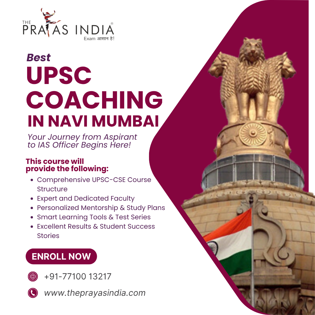 Transform your IAS dream into reality with The Prayas India – the Best IAS Coaching in Navi Mumbai! Get expert mentorship, updated study material, daily current affairs, and strategic guidance for Prelims, Mains & Interview. Join our top-rated classroom or online programs and take your first step towards success in the UPSC Civil Services Exam.