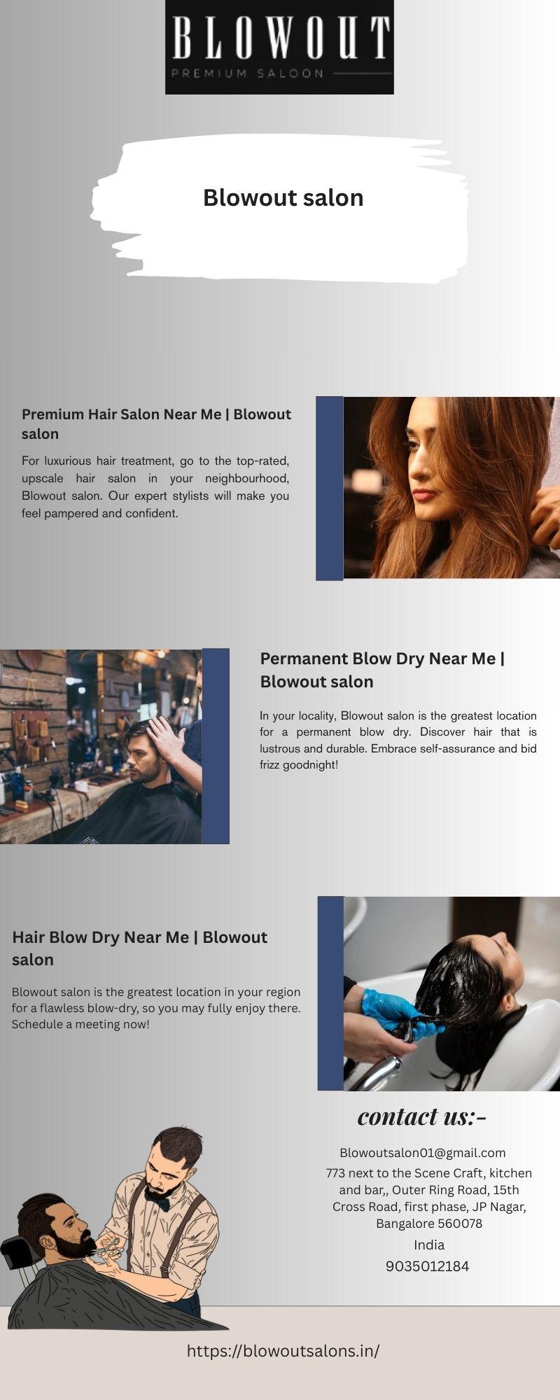 Premium Hair Salon Near Me | Blowout salon For luxurious hair treatment, go to the top-rated, upscale hair salon in your neighbourhood, Blowout salon. Our expert stylists will make you feel pampered and confident. https://blowoutsalons.in/0 Comments 0 Shares 156 Views -