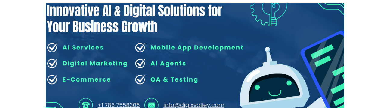 Digixvalley is an award-winning AI digital development company helping businesses thrive with powerful technology solutions. From AI services, mobile app development, and cloud integration to AI chatbots, digital marketing, software product engineering, and dedicated development teams — we deliver end-to-end innovation. Our expertise transforms business challenges into scalable digital products, driving performance, growth, and market leadership through tailored, future-ready solutions across multiple industries.