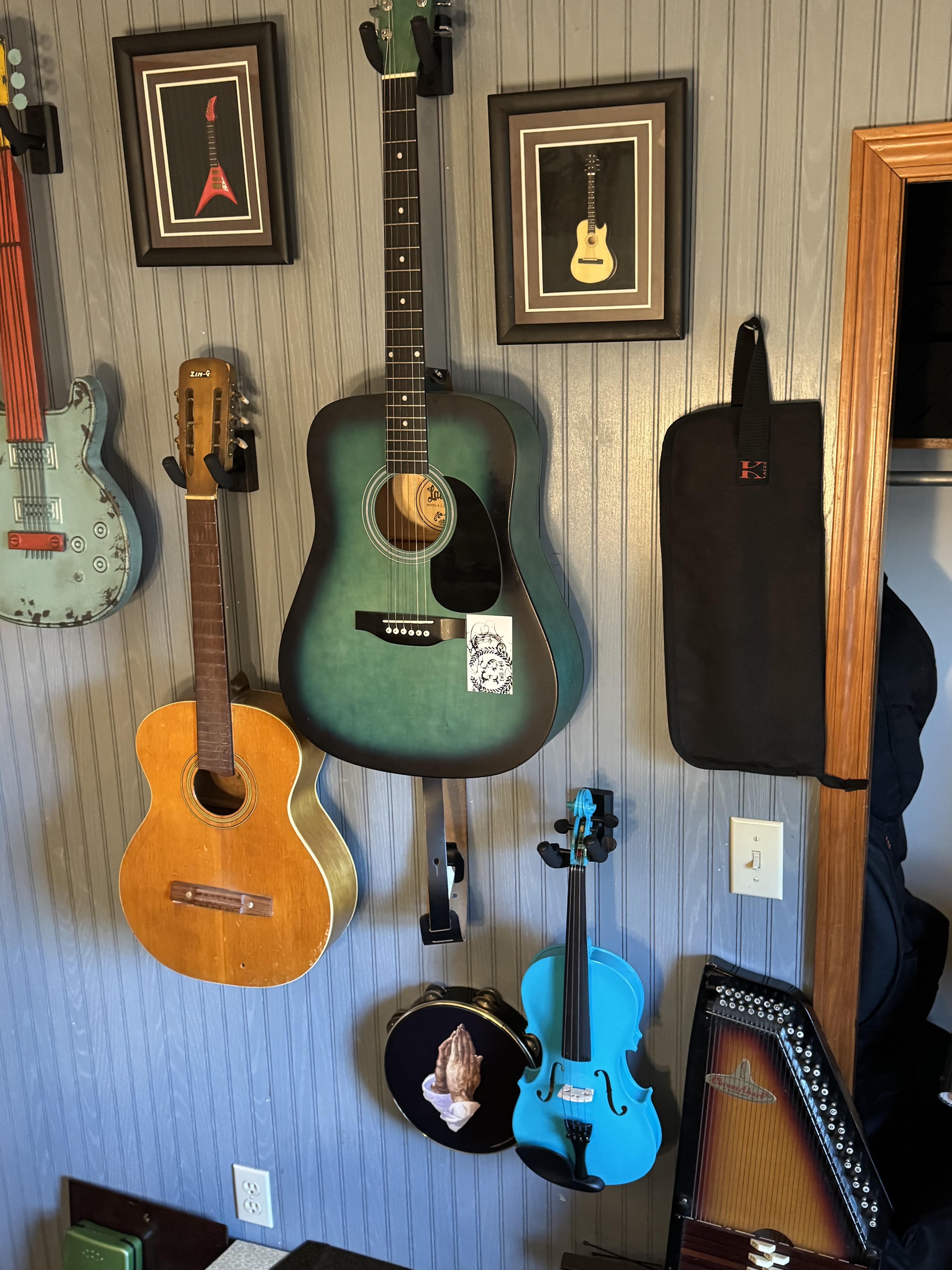I have my Guitars, Tambourine, Violin, ChromAHarp & my wall Art. This wall is both Artsy & Functional.I have my Guitars, Tambourine, Violin, ChromAHarp & my wall Art. This wall is both Artsy & Functional.0 Comments 0 Shares 161 Views1