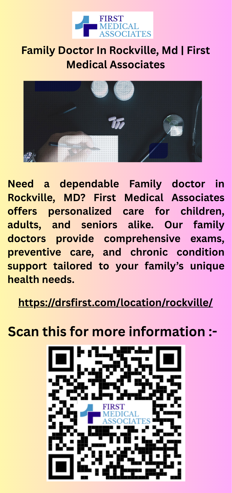 https://drsfirst.com/location/rockville/Family Doctor In Rockville, Md | First Medical Associates Need a dependable Family doctor in Rockville, MD? First Medical Associates offers personalized care for children, adults, and seniors alike. Our family doctors provide comprehensive exams, preventive care, and chronic condition support tailored to your family’s unique health needs. https://drsfirst.com/location/rockville/0 Comments 0 Shares 177 Views -
