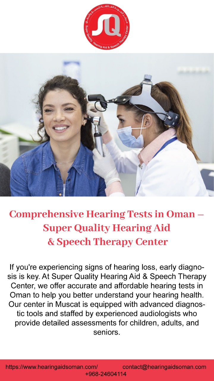 https://www.hearingaidsoman.com/hearing-tests-in-oman.phpIf you're experiencing signs of hearing loss, early diagnosis is key. At Super Quality Hearing Aid & Speech Therapy Center, we offer accurate and affordable hearing tests in Oman to help you better understand your hearing health. Our center in Muscat is equipped with advanced diagnostic tools and staffed by experienced audiologists who provide detailed assessments for children, adults, and seniors. https://www.hearingaidsoman.com/hearing-tests-in-oman.php0 Comments 0 Shares 290 Views -