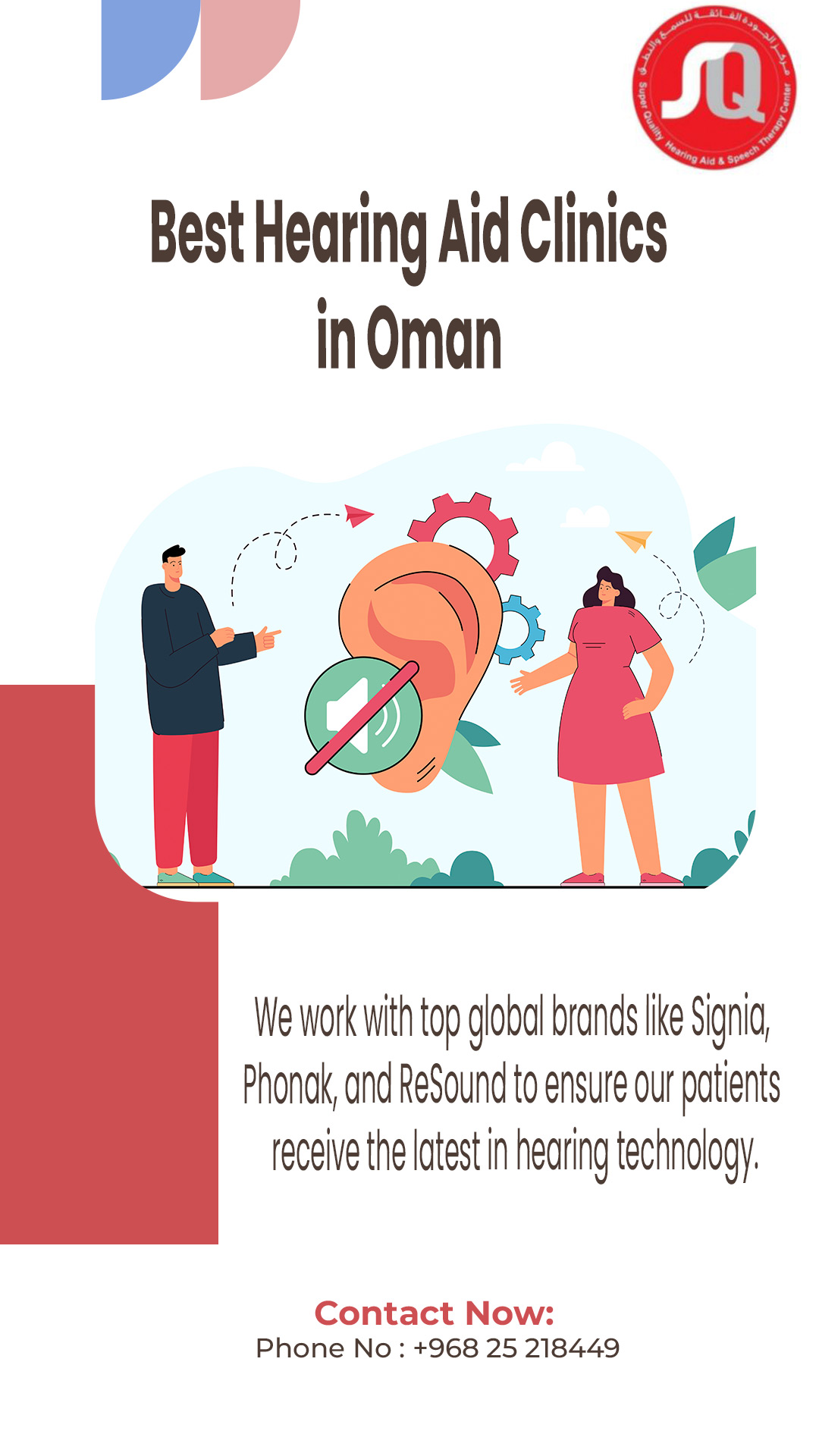 Super Quality Hearing Aid & Speech Therapy Center is a leading provider of audiological and speech therapy services in Oman, with multiple branches across the country.