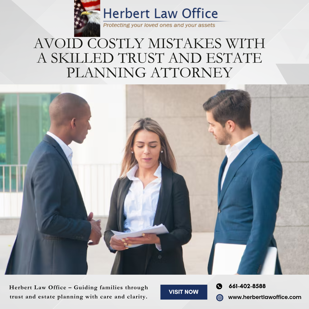 Find the Best Estate Planning Attorney for Your Future Finding the right #Estate #Planning #Attorney #Near #Me is essential for protecting your assets and ensuring your wishes are honored. An experienced attorney helps create wills, trusts, power of attorney documents, and healthcare directives to meet your needs. They guide you through complex legal processes, minimizing tax burdens and avoiding probate complications. With personalized estate planning, you can safeguard your family’s financial future and ensure a smooth transfer of assets. Whether you're updating an existing plan or starting fresh, expert legal advice ensures peace of mind. Visit the Herbert Law Office website today for more details! https://www.herbertlawoffice.com/palmdale-estate-planning-attorney/