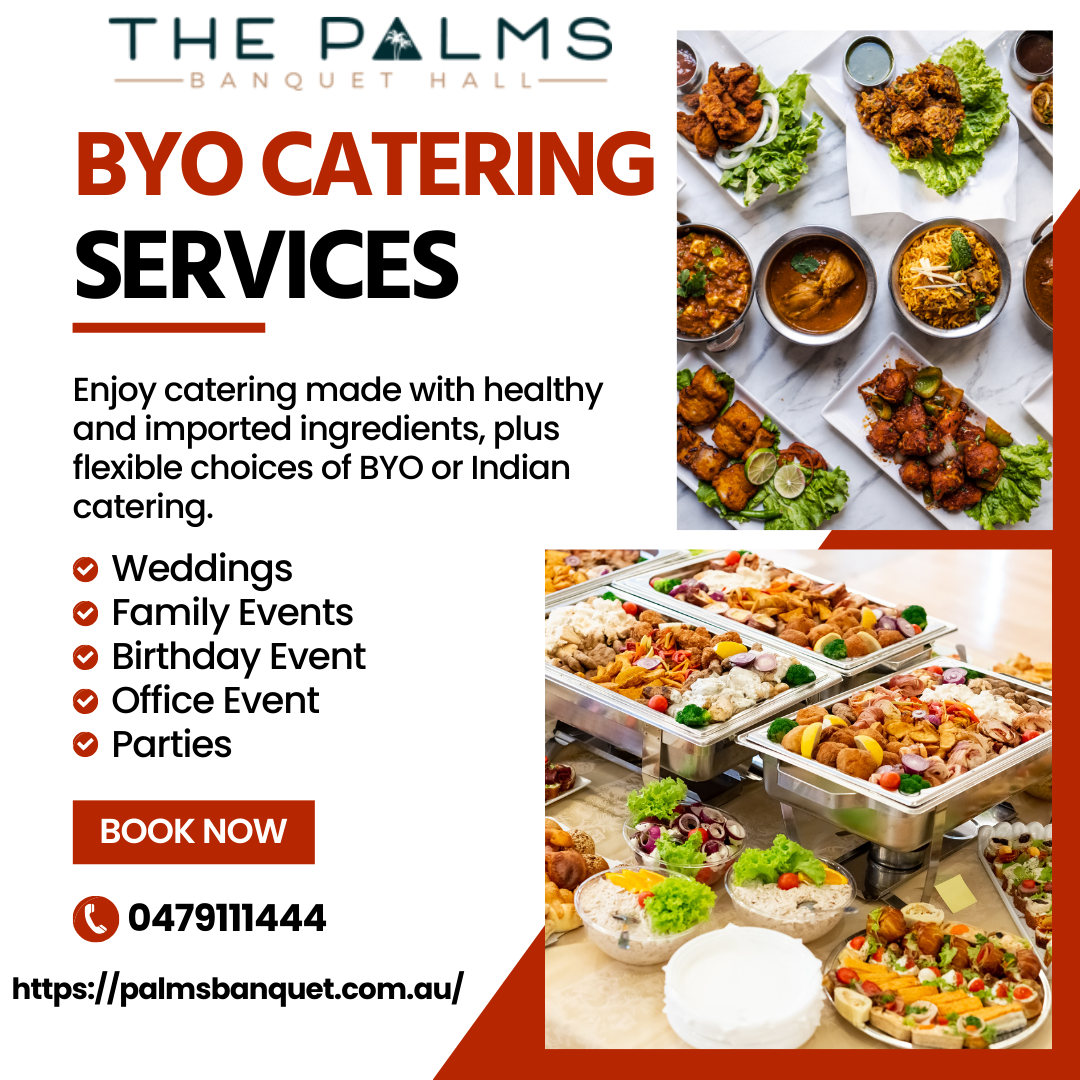 Every event feels special with tasty food. Palms Banquet in Adelaide offers stylish halls and warm hospitality to match. Choosing BYO catering venues gives you the freedom to bring your own food, family recipes, or private chef while saving costs. It keeps your event personal, comfortable for older guests, and affordable too. For bookings, call 0479111444.