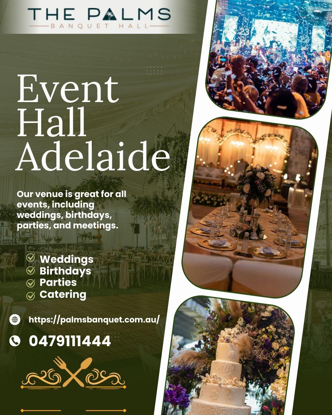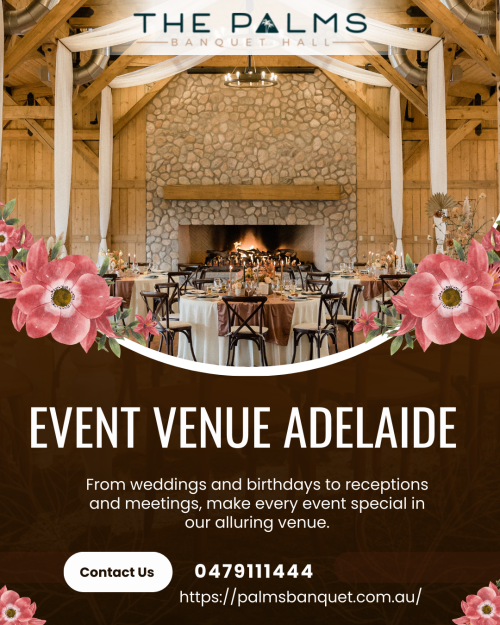Top Event Hall in Adelaide | Palms Banquet An Event Hall can make any celebration bigger and better. Family and friends can enjoy the event in a nice place with good space. Make your special day memorable with Palms Banquet, a beautiful venue perfect for weddings, parties, receptions, and corporate events with great service, delicious food, and a warm atmosphere to make every moment special. Choose our spacious Event Hall for celebrations of any size with both indoor and outdoor options. We focus on comfort, style, and hassle-free planning so you can enjoy your event. Contact:0479111444 Visit us - https://palmsbanquet.com.au/0 Comments 0 Shares 252 ViewsPlease log in to like, share and comment! -