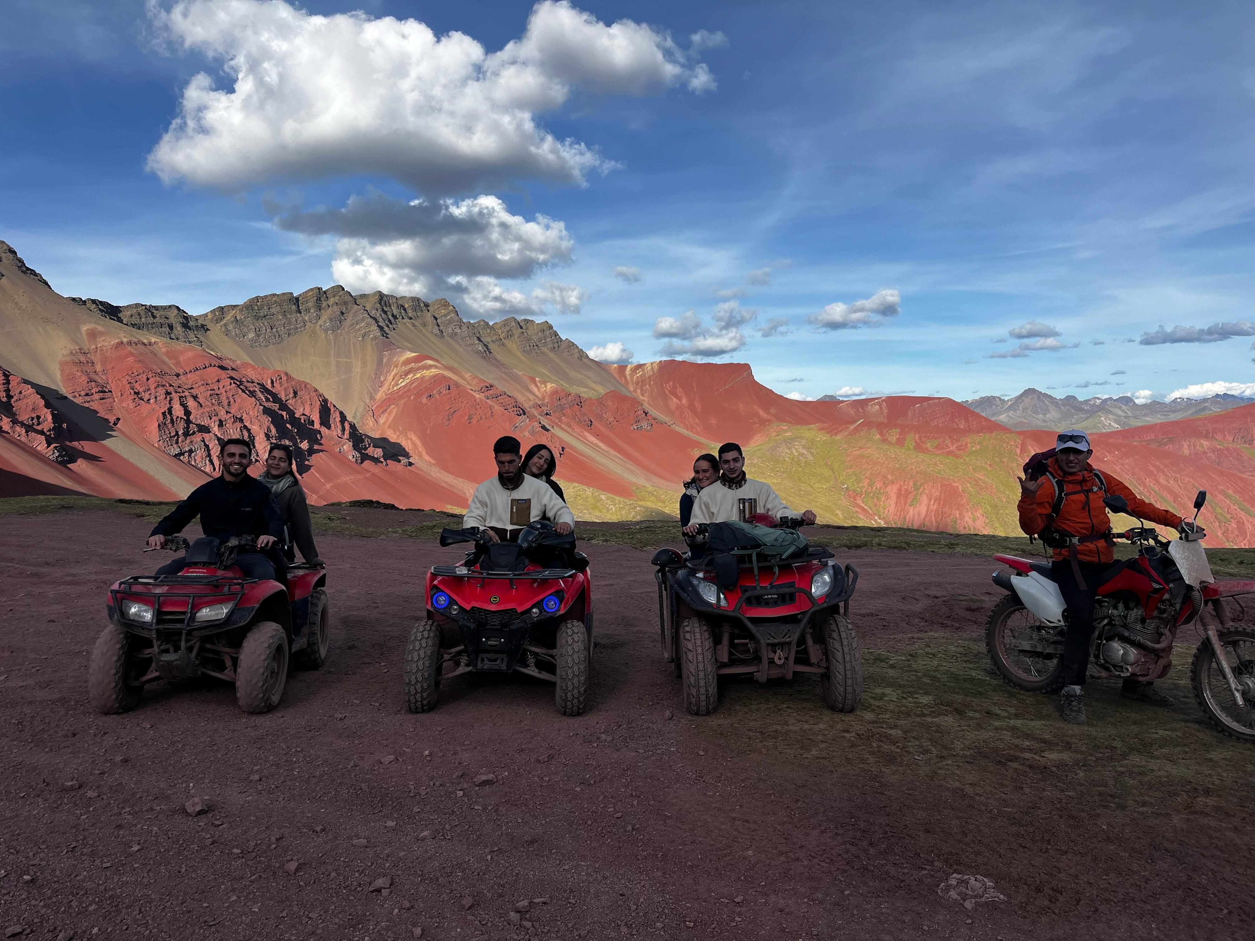 Este tour combina la emoción de conducir un vehículo todo terreno (ATV) con la belleza natural de los Andes peruanos. En lugar de subir a pie durante horas, los visitantes recorren paisajes increíbles en cuatrimoto, atravesando valles, ríos y senderos de montaña. Al finalizar el recorrido en ATV, solo queda una breve caminata hasta el punto panorámico donde se aprecia la famosa Montaña de Colores.