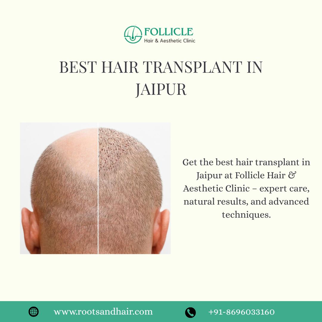 Follicle Hair & Aesthetic Clinic in Jaipur offers the best hair transplant in Jaipur with advanced techniques, expert surgeons, and natural results. Known for personalized care and high success rates, the clinic ensures minimal downtime and maximum satisfaction. Choose Follicle for safe, effective, and affordable hair restoration in Jaipur.
