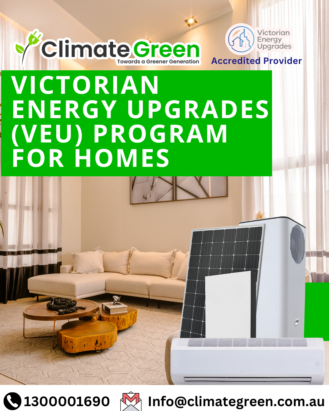 #ClimateGreen #SolarRebates #MelbourneSolar #VEUProgram #CleanEnergy #AccreditedProvider #SolarVictoria #SustainableLiving #SolarPanelsMelbourne