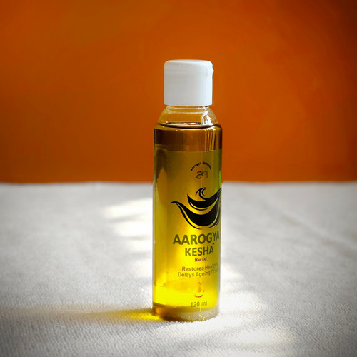 • Revitalize your locks with Aarogya Kesha, a premium quality herbal hair oil infused with nature's best ingredients to nourish, repair, and protect your hair. Experience visible results for reduced hair fall, less dandruff, and luxuriously voluminous growth.