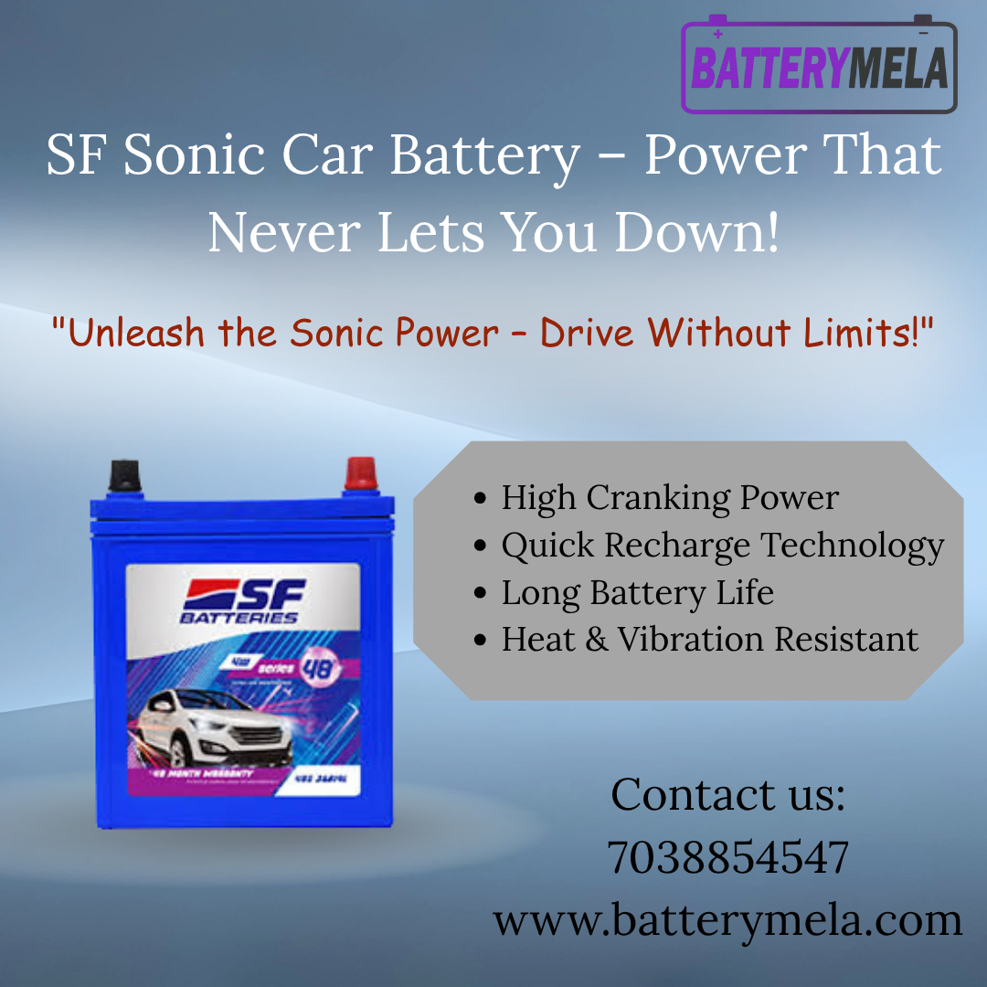 SF Sonic – Built for Heat, Power, and Performance Drive worry-free with SF Sonic’s vibration-resistant and heat-proof technology. Visit BatteryMela to buy or replace your car battery now. #SFSonicCarBattery #CarBatteryPune #BatteryMela #CarBatteryNearMe