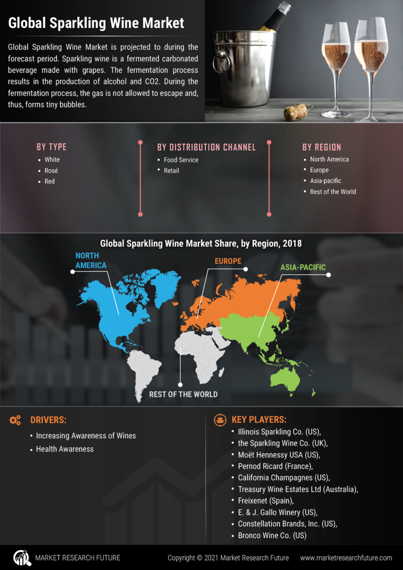 Pernod Ricard (France), California Champagnes (US), Treasury Wine Estates Ltd (Australia), Illinois Sparkling Co. (US), Freixenet (Spain), The Sparkling Wine Co. (UK), Constellation Brands, Inc. (US), Moët Hennessy USA (US), E. & J. Gallo Winery (US), and Bronco Wine Co. (US) are some of the important companies in the Sparkling Wine Market Growth.