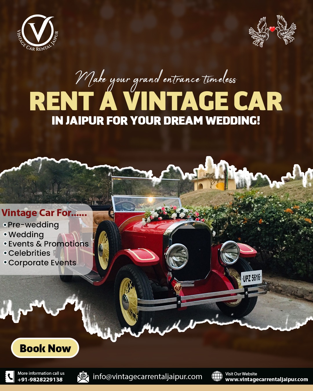 Make your moments unforgettable with our vintage car rental for special occasions in Jaipur! Whether it's a wedding, anniversary, photoshoot, or VIP event, our classic cars add a touch of luxury and elegance. Book now for a royal experience!